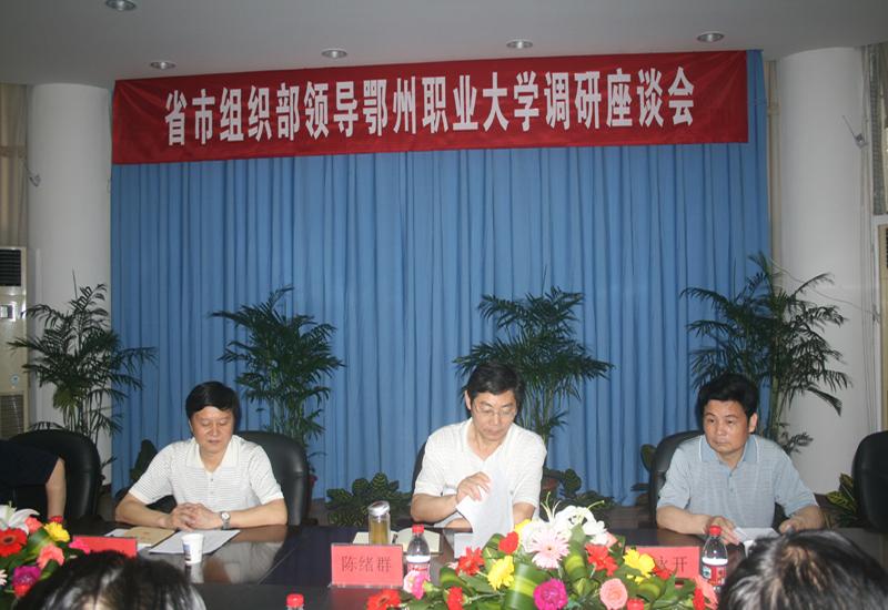 (本网讯)6月11日,省委组织部副部长陈绪群一行莅临我校,就“深入整治用人上不正之风、进一步提高选人用人公信度”等工作进行调研。陈绪群指出,要努力探索正确选人用人机制,为鄂州职业大学的发展提供坚强的组织保障。