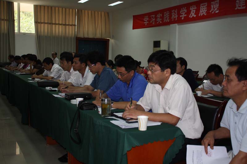 (党办消息)7月8日上午,我校召开了党委理论中心组科学发展观专题学习会议。校党委成员、各院系处室主要负责人参加了会议,会议由校党委副书记副校长洪贞银主持。