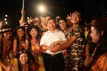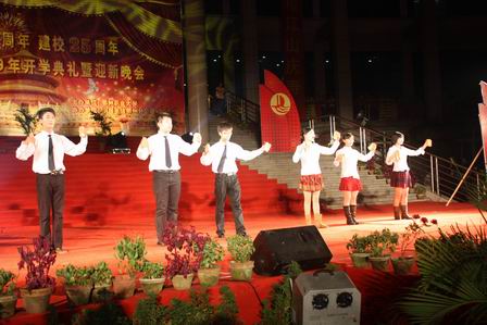 9月26日晚,图书馆广场华灯璀璨、歌舞飞扬,一派节日的喜庆。我校庆祝建国60年、建校25周年和2009级新生开学典礼暨迎新文艺晚会在这里隆重举行。市领导毕华、胡楚平,咸宁市委领导、校友胡超文,校领导彭有轩、田巨平、洪贞银、童长江、饶浩洲、卫杨春、蒋沁蓓、胡海平,校党委委员尹传武、夏清山等出席盛典。