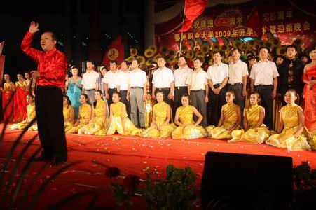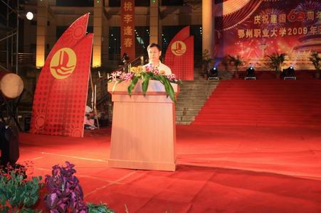 随后,一台精彩的文艺晚会拉开了建国60周年暨我校建校25周年的庆典活动。演出现场,来自国内外的30多名鄂大校友发来了贺电、贺信,向母校致以最诚挚的祝贺;有20多家校企友好合作单位也相继发来贺电,共祝祖国繁荣富强,鄂州职业大学前程似锦。