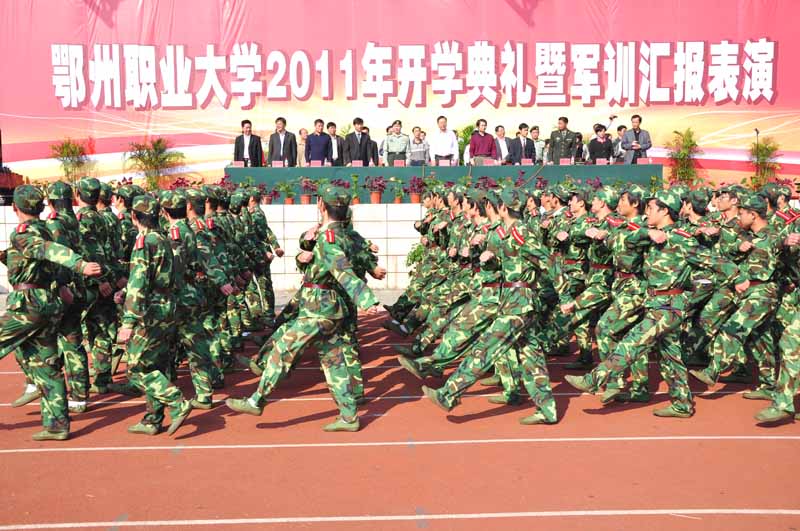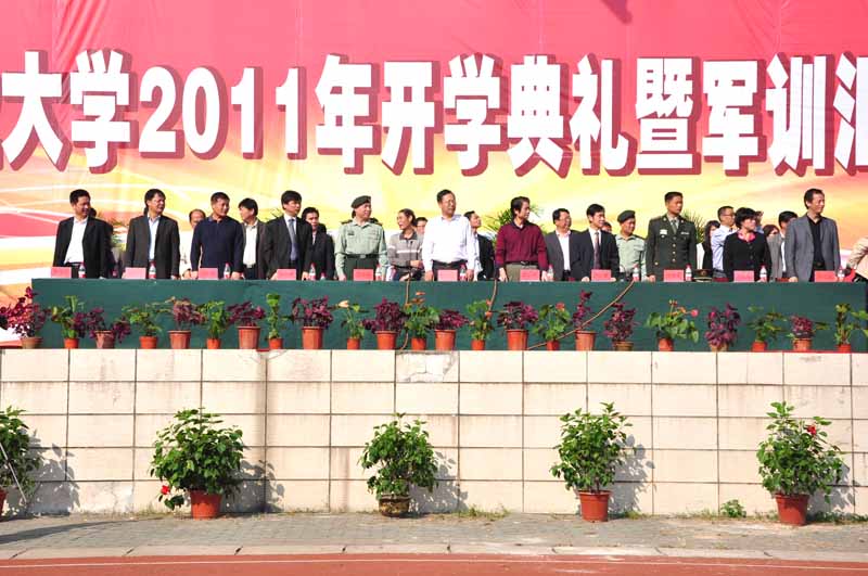9月21日上午, 2011级新生开学典礼暨军训汇报表演在我校体育场隆重举行,4000余名新生以昂扬的精神、严整的军姿向全校师生圆满展示了他们的训练成果。校党委书记杨植涛在承训部队首长的陪同下,检阅了新生方阵,并代表我校向承训部队赠送了锦旗。校长田巨平代表学校致辞。