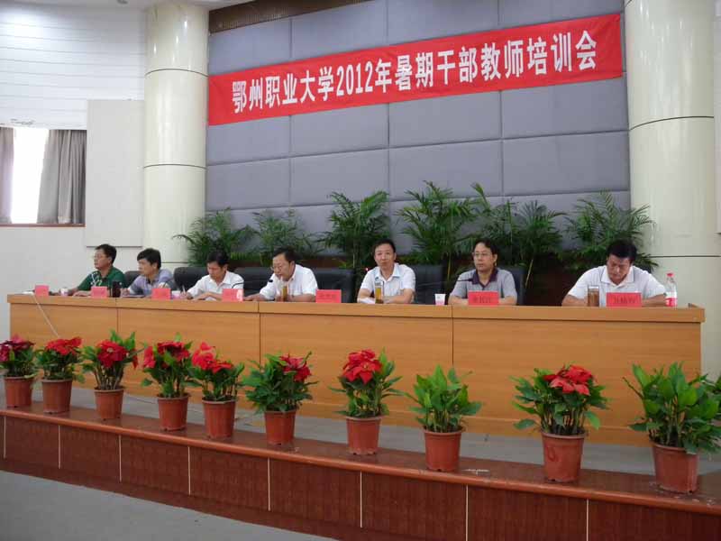 8月28日下午,我校为期四天的2012年暑期干部、教师系列培训活动在图书馆学术报告厅圆满结束,校党委书记杨植涛、校长孔国庆分别作了培训活动总结讲话和国家骨干高职院校建设工作动员讲话。党委副书记、副校长洪贞银主持会议,全校三百余名干部、教师参加会议。