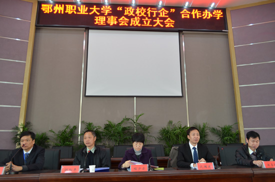 鄂州职业大学“政校行企”合作办学理事会是由市政府牵头,相关职能部门、相关行业企业、鄂州职业大学自愿组成的联合性、非盈利性社会组织,旨在统筹整合四方职业教育资源,建构政府主导、学校主体、行业参与、企业合作的多元合作办学体制机制,合力培养适应鄂州经济社会改革与发展的高端技能型专门人才,引领鄂州市职业教育科学发展。