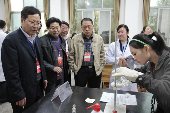 3月23日上午,我校药学和物流管理两试点单招专业分别在医学院实验室和求真楼物流管理实训中心进行技能操作考试。省招生主任左飞及武汉铁路职业技术职院、武汉船舶职业技术学院专家一行来到我校巡视督查考试情况,校领导杨植涛、孔国庆、洪贞银、童长江及相关院系、处室负责人陪同巡视。