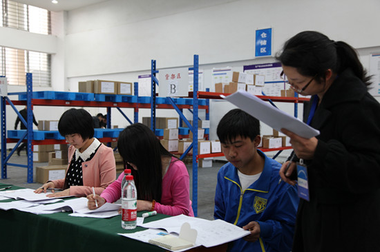 因报考人数较多,此次单招考试持续一天半时间,继22日下午的文化课考试之后,来自全省近四百名中职毕业生参加了今天举行的专业技能操作考试。其中药学专业的技能操作考试分为药理咨询、药剂制备和处方调配三个部分;物流管理专业的技能操作考试主要考察考生的入库、在库管理、出库配送等方面的作业能力,并增加了面试环节。
