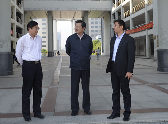 李兵首先来到我校主教学楼,登临大楼俯瞰整个校区,察看了学校主轴线求真路一线的校园环境,同时听取校长孔国庆对学校基本情况的汇报,详细了解我校的招生、就业和校区建设发展情况,并针对我校校区规划和环境建设等方面的具体问题,提出了指导意见。