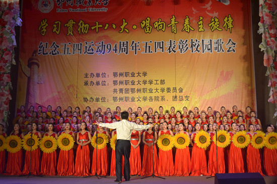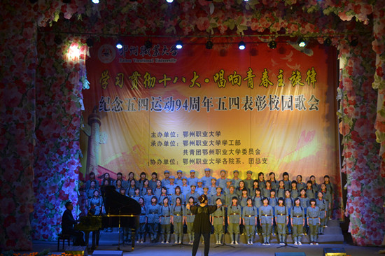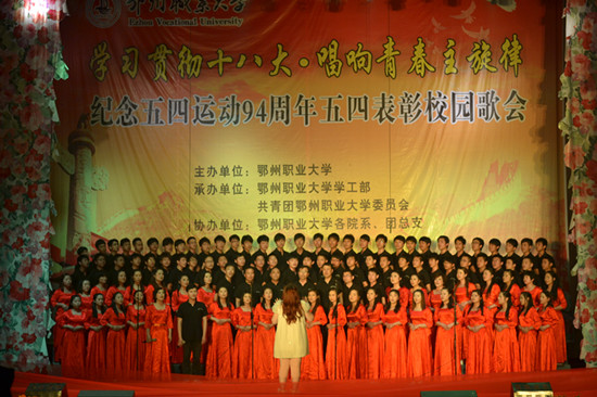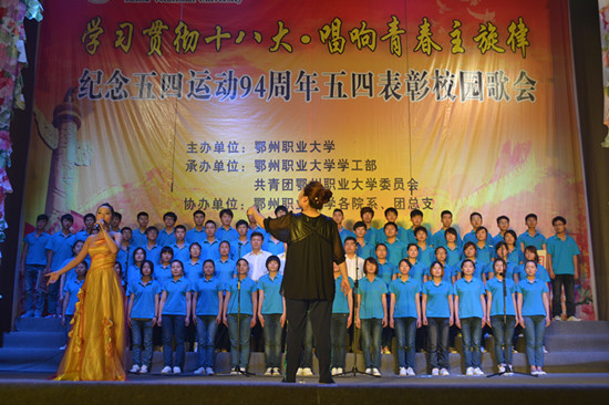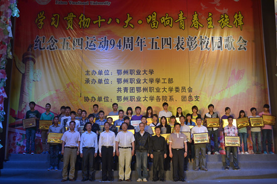 5月6日晚,我校“纪念五四运动94周年五四表彰校园歌会”在艺术礼堂举行。校党委书记杨植涛、校长孔国庆,共青团鄂州市委副书记邓冰等领导出席歌会。