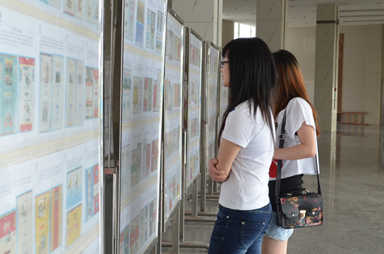 展览通过一张张烟标,展示了祖国各地的山山水水、历史古迹、自然遗产,集中体现了中国壮丽丰饶的人文、自然景观。精致美丽、特色鲜明又富含文化底蕴的各类型的烟标吸引了不少同学驻足观看。