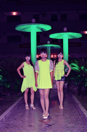 本次服装展演的模特及造型设计均由我校学生担当 。炫彩的舞台上,是一个个展示精美服饰的妙曼身影。从童话中走出公主般的纯洁无暇到明星大腕的女王风采,给予我们的,是一种由视觉到心灵的震撼,优雅华丽,端庄知性,一切有关于女性美好的词汇,在此展现。时而激昂、时而婉转的音符在耳畔跳动。现场掌声、喝彩声、惊叹声此起彼伏,气氛热烈。
