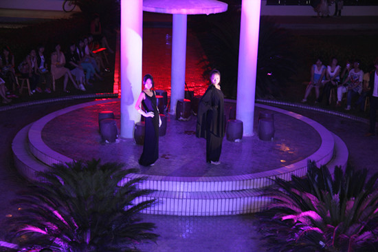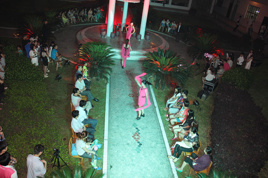 本次走秀展示台设置在学校东区3号教学楼一楼景观区, 别出心裁的选址旨在倡导自然、环保、生态、和谐的理念,将服装设计与生态观念、艺术呈现、校园文化相结合。