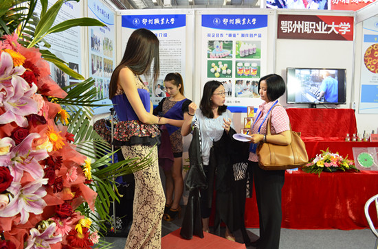 展洽会期间,我校所在展厅,累计接待参观者1000余人次。教育部副部长鲁昕在我校展厅参观期间,非常详细询问了各件展品,并与我校带队老师进行了交流。看到全国职业院校独有的金刚石工具展品时,鲁昕部长肯定了金刚石产品的特色之处,当她听说会展期间我校将与企业签订共建“院士专家工作站”,部长顿时眼睛一亮,连声称赞“好啊!好啊!”当我校带队老师介绍药学专业“维E护手霜”没有添加任何香精等原料时,鲁昕部长闻了闻产品后,高兴地说,“这是真正的环保产品,应该大力推向市场!”在服装展区前,鲁昕部长同两位学生模特亲切交谈,听说学生们不仅能自己设计、自己制作,还能自己时装秀时,她说,“就应该这样,让学生能设计、能制作、能展示!”