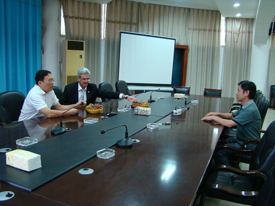 在参观了校园风貌之后,洪贞银和William Boorman在图书馆一楼会议室进行了简短座谈,两校间就开展教师互派、学生交流等合作办学的相关事宜进行了初步的商谈,并达成了进一步沟通与合作的意向。
