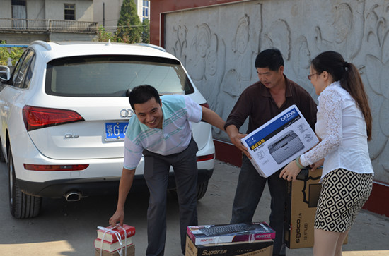 10月13日,中职学院党总支成员又一次来到沼山镇杨井小学,看望该校的留守儿童,并给孩子们带来了价值5000余元的电脑及文具用品。(文 双全)