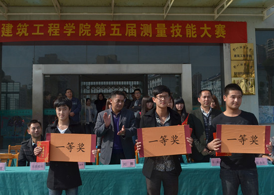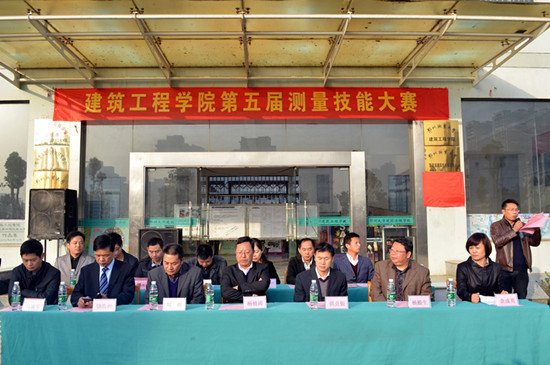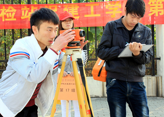 揭牌仪式后,我校第五届测量技能大赛也拉开帷幕。本次大赛共有32个小组的选手参加角逐,比赛分业余组和专业组。专业组选手来自建筑工程学院12级和13级测量专业的学生,而建工班、房产班、道桥班的100余名同学则踊跃参加了业余组的比赛。