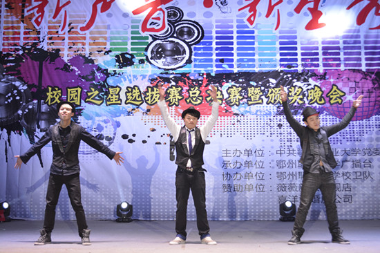 最终,来自管理学院的赵旭彤同学凭借惊艳全场的诗歌朗诵《盛世中国》一举拿下全场最高分,摘得“语言之星”;来自商学院的卢云飞同学凭借精湛的街舞功底获得“舞蹈之星”;商学院龚文杰同学获得“音乐之星”;艺术与传媒学院谢立超同学获得“最佳台风奖”;医学院宣宣组合获得“最佳组合奖”;医学院舒佳雯、廖声玲获“最佳创意奖”;建筑工程学院秘密组合获“最佳人气奖”;管理学院段子实、孙萍、Whyme 组合,医学院邵灿和商学院贝卡潮人帮获优秀奖。
