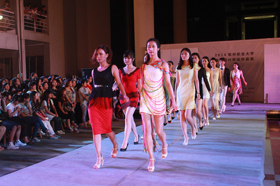 本网讯(通讯员 南利君 学生记者 胡慧 刘婷婷) 炫目的灯光、高挑的模特、时尚的服装、自信的笑容……5月8日晚七点半,艺术与传媒学院服装设计专业2014届毕业生作品展演在行知楼中央大厅拉开帷幕,整个展演持续近三小时,以T台走秀、文艺表演的方式向观众集中展示了37个主题系列的近200套精美服装,全校千余名师生现场观看了展演。