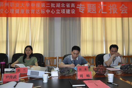 7月9日,省教育厅心理健康教育达标中心考评专家组组长、武汉理工大学学工部副部长田禾一行三人来校,实地考察我校心理健康教育中心达标建设情况。副校长周岫出席检查考评会,学工处、人事处、财务处有关负责人、心理健康教育中心专职教师参加会议。