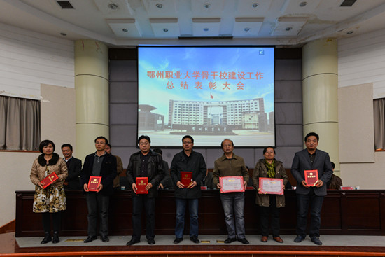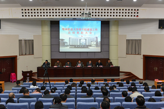 校党委书记杨植涛总结、回顾了我校骨干校建设的历程和成绩,他说,从2010年学校被教育部、财政部确定为“国家示范性高等职业院校建设计划”骨干高职院校立项建设单位到2014年通过验收的四年里,学校紧紧围绕湖北省委省政府提出的“武鄂一体化”建设蓝图,按照改革创新、开放合作、质量为本、立德树人的建设理念,有效推进了产教融合和校企合作,共建了校企合作实体;持续深化了多样化工学结合专业人才培养模式改革和课程体系及课程内容改革,持续提高了高技能人才培养质量;充分发挥了国家骨干高职院校建设的引领作用,辐射带动了其它专业以及鄂州市职业教育改革发展。