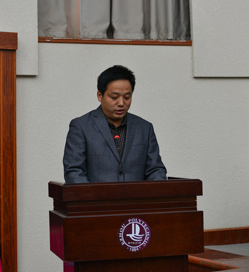本网讯(记者 宣葶/文 学生记者 周楚明/摄)为总结学校国家骨干高职院校建设工作的成绩,继续发扬三年来尤其是迎接验收冲刺阶段的干劲和精神,在更高层面上推动学校新一轮以教学为核心的改革,为在“十三五”建设期内实现学校升级升格发展夯实基础,11月19日下午,我校召开大会对国家骨干校建设工作进行总结、表彰,余成英等92名先进工作者受表彰,校党委书记杨植涛作骨干校建设总结报告,校党委副书记、副校长洪贞银主持大会。