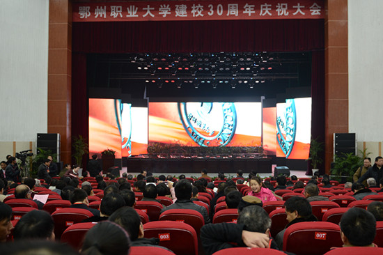 省教育厅副厅级调研员孟庆金,湖北省职教学会副会长、武汉船舶职业技术学院党委书记熊仕涛教授,湖北省模具工业协会会长、湖北省鄂丰模具有限公司总经理武军,著名职教专家田随明教授,校友代表、深圳前海力泽金融控股有限公司董事长刘泽军先生和教师代表陈静教授先后发表了热情洋溢的致辞,共同为鄂州职业大学三十年华诞喝彩!