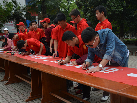 本网讯(学生记者陈梦真 王俊/文雷盼盼 黄宇颖/摄)4月18日,校团委组织校青年志愿者“阳光使者”参与“护航中华鲟”活动,积极向市民宣传中华鲟保护意识。