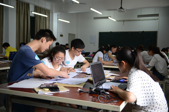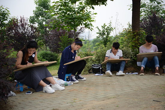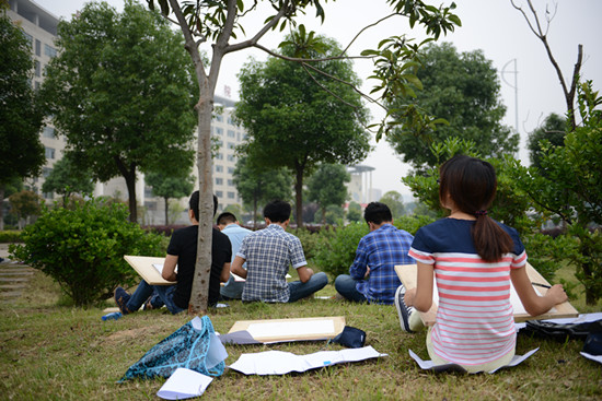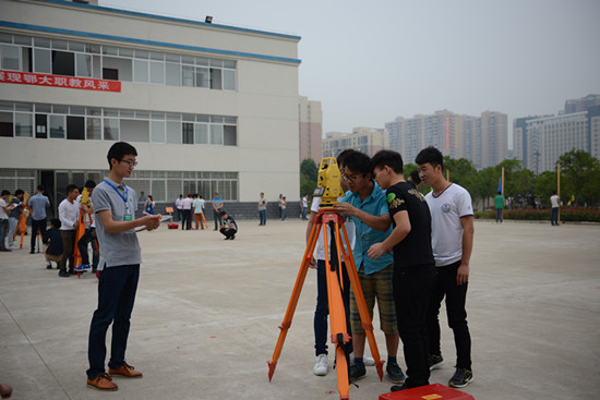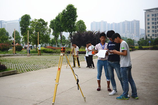 “建筑设计快题”是唯一一个只针对13级建筑设计专业的比赛项目,考察学生对建筑物设计构架的快速设计与表现能力。赛场选在了求真楼广场,参赛学生们三三两两地坐在广场花园里的树荫下、绿篱边,以求真楼和广场花园为主体作画。“手绘表现”针对室内设计专业,主要考察学生的空间、形象思维与手绘能力。“建筑材料与检测”分为“细集料筛分试验”和“水泥标准稠度用水量测验”两个竞赛单元,主要考察道桥专业和建筑工程技术专业的学生对基本建筑材料的检测与评定水平。“工程造价”在行知楼内进行,针对建筑工程技术和工程造价两个专业展开,主要考察学生的软件计量能力。“工程测量”主要考察建筑工程设计和工程测量两专业学生的工程建设的勘测能力,行知楼、实训中心周边的广场、主干道、花园里,处处可见参赛学生们认真测量的身影。