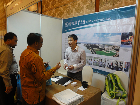 本网讯(记者 宣葶) 5月中旬,我校参加由湖北省教育厅组织的“留学湖北——2015赴印度尼西亚、泰国高等教育展”,向东南亚国家招收留学生。会展期间,省委副书记张昌尔专程来到印度尼西亚会展中心及我校展台前,了解询问展览情况。