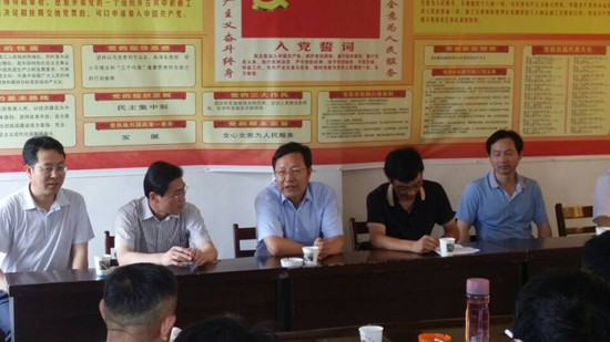 本网讯(通讯员 熊克华)6月26日,校党委书记杨植涛到我校扶贫共建村、“第一书记”驻点村梁子湖区太和镇农科村进行调研,给村里的农民党员讲了一堂生动的专题党课。