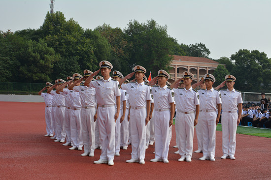55名来自海军工程大学干部训练大队的青年官兵担任军训教官,今年也是海军工程大学第四度承接我校新生军训任务。