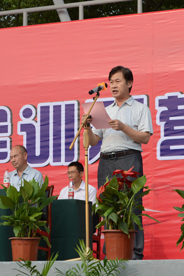 校党委书记杨植涛向新生军训团授旗,标志着为期13天的2015年新生军训正式开始。