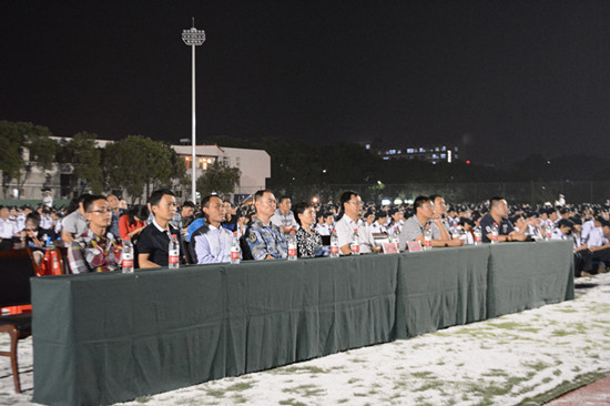 本网讯(学生记者陈秋宇 王俊 刘晓辉/文 黄宇颖 黄瑶/摄)9月19日是国防教育日,晚7点,海军工程大学李松祥教授在本部体育场为我校5200余军训新生作主题为“牢记历史使命,建设海洋强国”的国防讲座。校领导周岫、胡海平和军训教官、师生一起聆听了讲座。