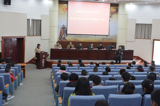 本网讯(学生记者王俊 刘光润 曾传莉/文吴思娴/摄)近日,原鄂州师范9603班校友捐资2万元设立“感恩励志奖学金”,以资奖在校品学兼优的贫困学生。11月21日上午在图书馆二楼报告厅,首届感恩励志奖学金颁奖大会隆重举行,校长洪贞银,副校长卫杨春、胡海平等以及原师范9603班校友出席大会并为10名优秀学子颁发奖学金。