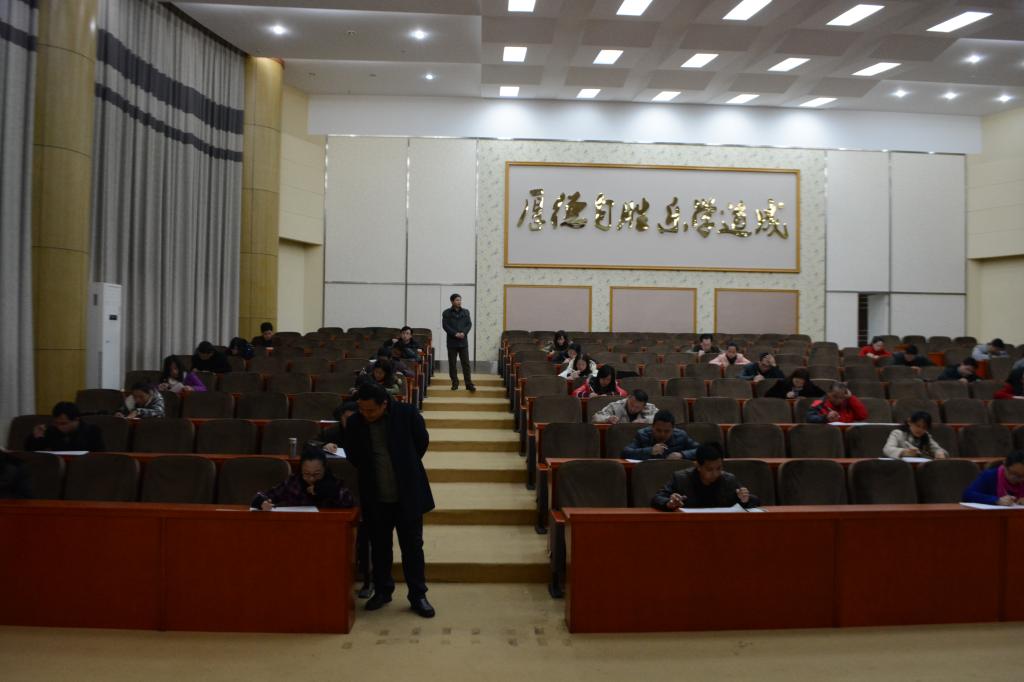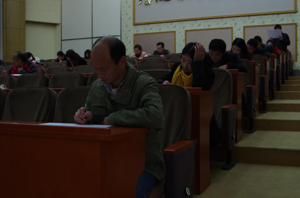 本报讯(通讯员郭浩/文学生记者吴思娴 吴金辉/摄)12月3日下午,学校对今年新晋的56名副科级以上党员干部就新《党章》、《准则》、《条例》,在专题辅导、个人自学的基础上,进行了考试测评。