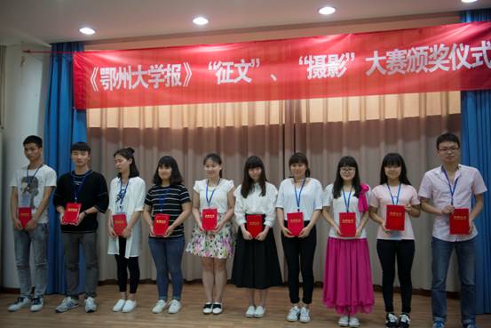 本网讯(学生记者 宋显峰 黄蓉蓉/文 吴思娴/摄)日前,由校党委宣传部主办、校报编辑部承办、校报学生记者团协办的《鄂州大学报》第五届征文比赛暨第三届摄影比赛评选出优胜作品,并于5月6日下午在图书馆一楼报告厅对获奖者进行了颁奖。