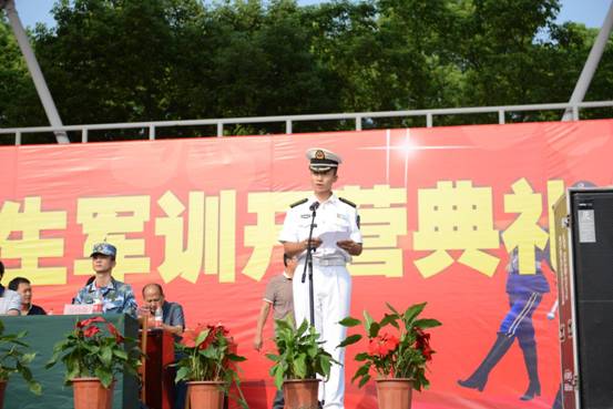今年是海军工程大学第五次承接我校新生军训任务,仪式上,校长洪贞银向承训大队表示感谢,并热情欢迎新同学的到来。