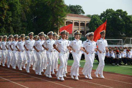 承训教官还进行了现场列队、行进等表演,整齐划一的动作,端庄整洁的仪表,引起全体学生的阵阵惊叹和欢呼,现场掌声不断。