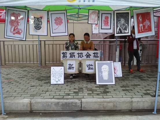 走过剪纸协会的展示区,一幅幅装裱精美的剪纸画挂在帐篷上,不少学生停留咨询。该协会招新工作人员介绍,雕花剪纸已入选了联合国教科文组织非物质文化遗产名录,学习雕花剪纸不仅可以让学生掌握一门技艺,也是传承非遗文化的需要。“今年6月,雕花剪纸省级文化遗产传承人还来到我校举办了讲座,加入我们可以近距离与大师接触哟!”