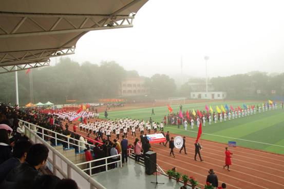 本网讯(学生记者 张文黎 刘晓庆 林晓宏/文 学生记者 张妮妮 李思翊 汪珊 谭春莲 向宇 吴金辉/摄)11月3日,校第20届秋季运动会在西区运动场开幕。全体校领导、各院(部)处室负责人及近万名师生一同参加了开幕式。
