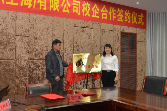 本网讯(记者 宣葶 文/摄)4月28日下午,我校与昌硕科技(上海)有限公司就人才培养签订校企合作协议。副校长卫杨春、昌硕科技(上海)有限公司人事经理黄美玉出席签约仪式,并为我校“昌硕科技(上海)有限公司人才培养基地”揭牌。