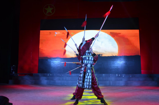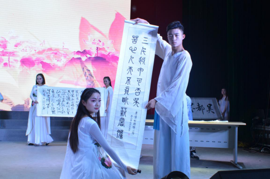 大合唱《光荣与梦想》拉开了文艺演出的序幕,演唱者们激情澎湃,唱出了新一代青年的积极风貌;教育与管理学院的傣族舞《版纳印象》,舞姿优美,独具特色;校艺术团身着汉服朗诵《礼仪之邦》,让观众感受到泱泱中华文明的魅力;《忠烈杨家将》的男生们挥舞长矛,将战场厮杀的悲壮场面演绎得淋漓尽致,完美地诠释了“忠义”二字,也将晚会推向了高潮。