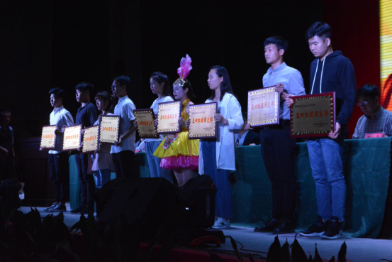 晚会上,校内一批优秀的青年组织和个人获得表彰,电子电气工程学院等3个团总支获“五四红旗团总支”荣誉称号;建筑工程学院2015级建筑工程技术2班团支部等18个团支部获“五四红旗团支部”荣誉称号;机械工程学院“阳光使者-文明创建”志愿服务队等2支志愿者服务队获“优秀志愿者组织”荣誉称号;校学生会、校报学生记者团等2个校级学生组织获“五四红旗学生组织”荣誉称号;校艺术团霓裳舞社等6个学生社团获“五四红旗学生社团”荣誉称号;陈彦宏等507名同学获“优秀团员”荣誉称号;黄建雄等237名同学获“优秀团干”荣誉称号;彭炜等136名同学获“优秀青年志愿者”荣誉称号。