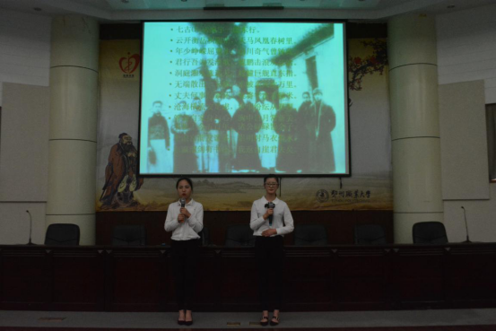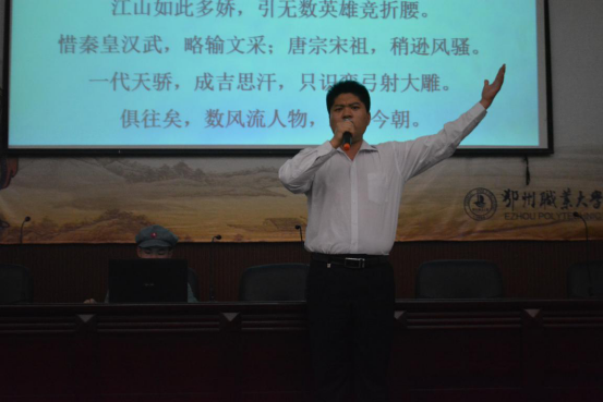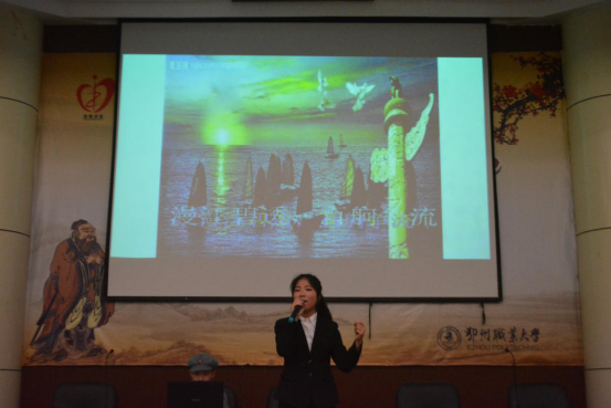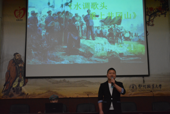 也有选手不走寻常路,医学院的贺扬以歌曲《映山红》开场,为大家朗诵了一首《清平乐·六盘山》。教育与管理学院的唐嫚,声情并茂地讲述了毛泽东诗词背后的故事。