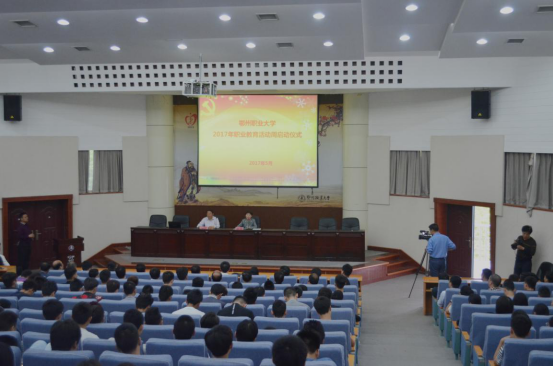 今年的职教周以“共筑职教梦,喜迎十九大”为主题,启动仪式上,周岫要求我校要以办好职业教育活动周为契机,做好校园开放、“职业体验日”等系列活动,及校内实训场所的开放、体验项目的设计与实施,展示最美校园和职教魅力。同时,还要组织师生走出校园,发挥专业优势,积极主动开展社会服务活动,使社会亲身体验、深度参与我校的职业教育工作,共享我校办学取得的成果,提升学校在社会上的影响力。并通过宣传职教故事和先进典型事例,大力弘扬“劳动光荣、技能宝贵、创造伟大”的时代风尚,大力弘扬“工匠精神”。