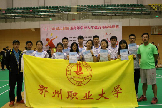 本网公共体育课部消息 5月5日至7日,由湖北省大学生体育协会举办的2017年湖北省普通高校大学生羽毛球锦标赛在武汉城市职业学院体育馆落下帷幕。我校由龙云鹏、张琼等12名学生组成的羽毛球代表队,获得了男女混双第三和第五,甲B组男子团体第五、女子团体第五的优秀成绩。