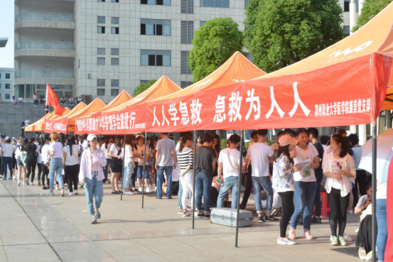 培训由鄂州市护理教育委员会主办,旨在提高我校大学生应急救护技能操作水平,推广普及急救、自救、互救技能。我校医学院、鄂州市中心血站、鄂州市医疗紧急救援中心等多家单位参与了本次公益活动。