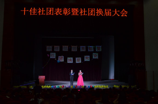 本网讯(学生记者 郭登峰 严程/文 胡涵智 李蕊/摄)5月19日晚,十佳社团表彰暨社团换届大会在大学生活动中心举行。思政实践教学团等10个学生社团获评“十佳社团”,35个学生社团进行了换届。