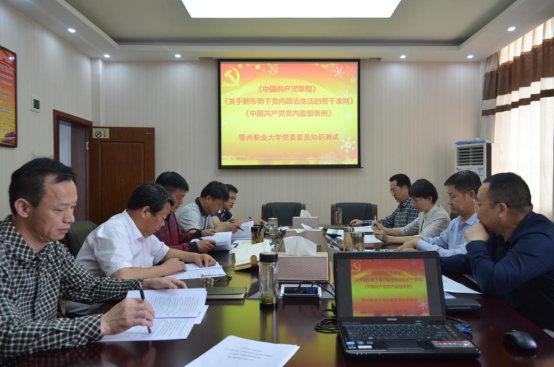 本网讯(记者刘彦)5月24日下午,我校全体党委委员在图书馆四楼会议室参加了《中国共产党章程》《关于新形势下党内政治生活的若干准则》《中国共产党党内监督条例》知识测试,以此强化自身纪律意识,增强党纪党规观念。