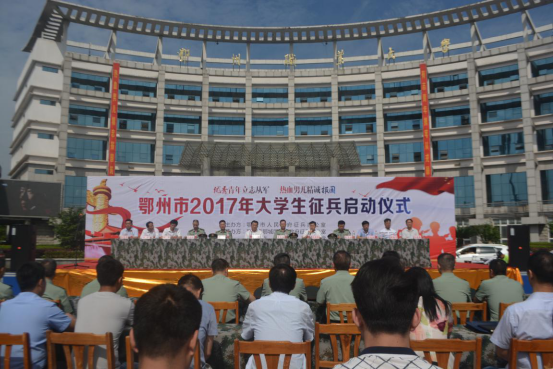 本网讯(学生记者 张文黎/文 刘思怡 巩远文/摄)5月25日上午,鄂州市2017大学生征兵工作在我校启动,市委常委、市征兵领导小组组长、副市长李军杰,鄂州军分区司令员童杰勋,政委徐明,校长洪贞银,副校长胡海平及市政府、军分区相关部门负责人出席了启动仪式。