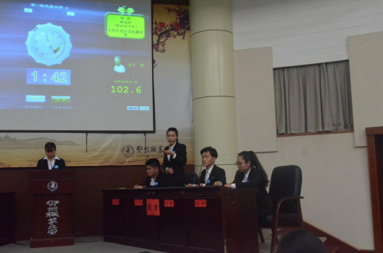 决赛正反方围绕“大学生更应该胸怀天下”与“大学生更应该传播真理”的辩题展开辩论。正方教育与管理学院代表队以天下为己任为切入点,用准确精炼的语言阐述了“大学生更应该胸怀天下”;反方商学院代表队以贝壳为例,从实践与真理的角度出发,层层剖析,论证“大学生更应该传播真理”。