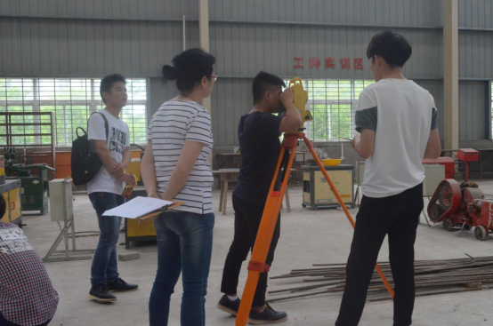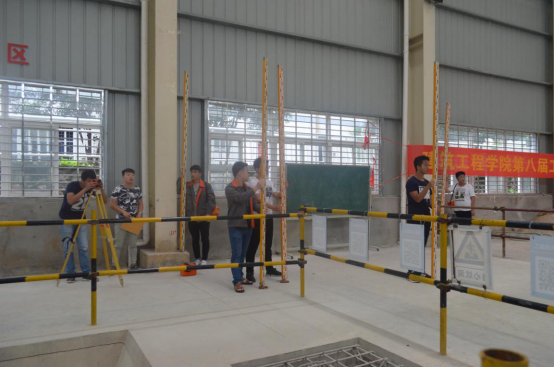 工程测量技能比赛分专业组和普通组进行,共计72名学生组成18名队伍参赛,普通组学生主要考察四等水准测量,水平角的测量,专业组则考察二等水准测量技能和全站仪坐标放样。